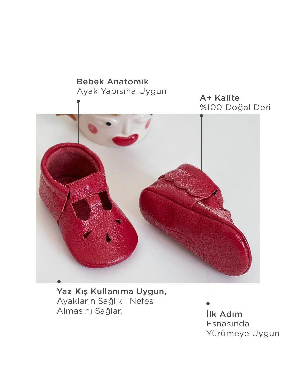 -Esnek, %100 doğal deri, bebeğinizin ayağının nefes almasını sağlıyor. 🌿
